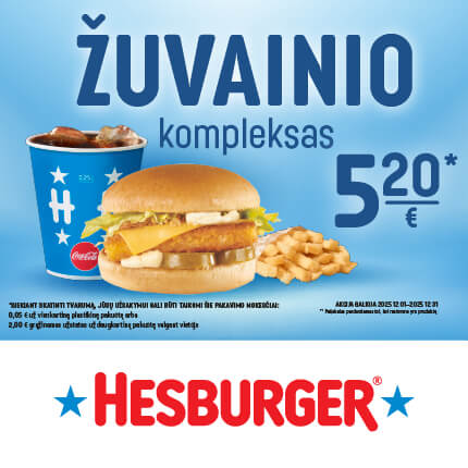Šį mėnesį visuose „Hesburger“ restoranuose siūlomas ypatingas ir ilgai lauktas pasiūlymas – žuvainis. Minkšta mėsainio bandelė, traški žuvies filė, čederio sūris, ledkalnio salotos, kepti traškūs svogūnai, chalopos paprika ir „Hesburger“ agurkinis majonezas. Užsukite ir mėgaukitės jau šiandien!