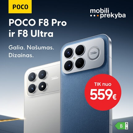 Naujieji POCO F8 Pro ir F8 Ultra jau „Mobili prekyba“ parduotuvėje! Galia, na6umas ir nuostabus dizainas – viskas telpa šiuose naujuose telefonuose. Užsukite ir įsigykite dabar šventinėmis kainomis, tik nuo 559 Eur.