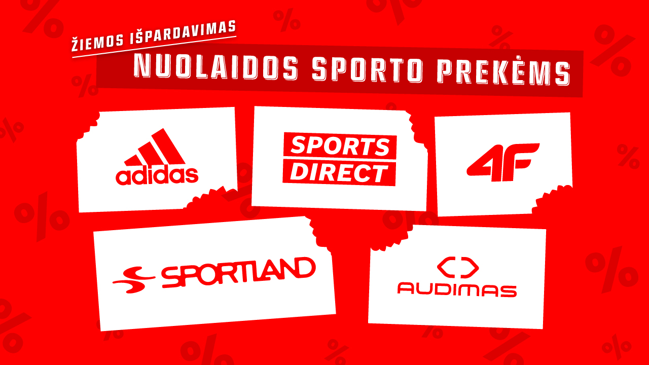 Nuolaidos iki 50%. Prekės su nuolaida pažymėtos raudona etikete.