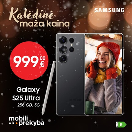 Kalėdinės mažos kainos jau „Mobili prekyba“ parduotuvėje! Įsigykite Samsung Galaxy S25 Ultra 256GB išmanųjį telefoną už šventinę kainą, tik 999 Eur.