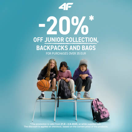 4F. – 20 % OFF JUNIOR COLLECTION, BACKPACKS AND BAGS FOR PURCHASES OVER 35 EUR