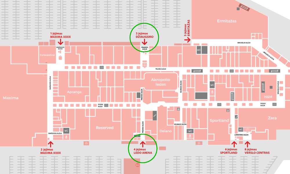 Atkreipiame dėmesį, kad 2026-01-01 į Prekybos ir pramogų centrą AKROPOLIS Vilniuje pateksite tik per 3-iąjį, 4-ąjį įėjimus.